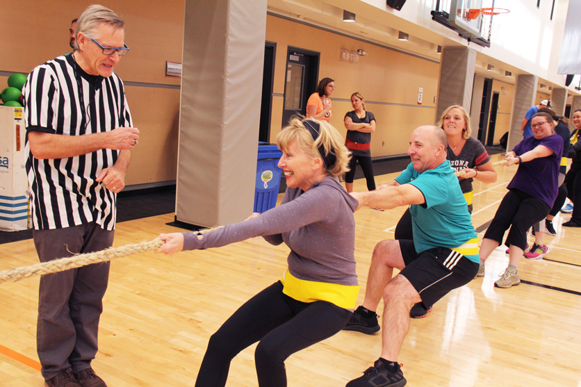CWB National Leasing President & CEO Michael Dubowec referees a tug-of-war match at a team-building event during the company’s annual Sales Conference